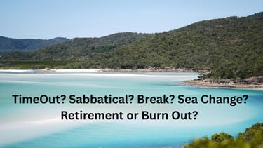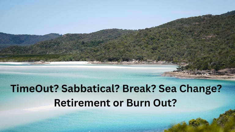 What would we be taking time out from? Would it be a break from running a business and doing community work, as well as the obligations we had committed to? Would it be just a minor shift or a significant change in our retirement plan?